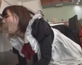 四つん這いになったメイドさんの手を使わなず頭を動かすねっとり着衣フェラチオ